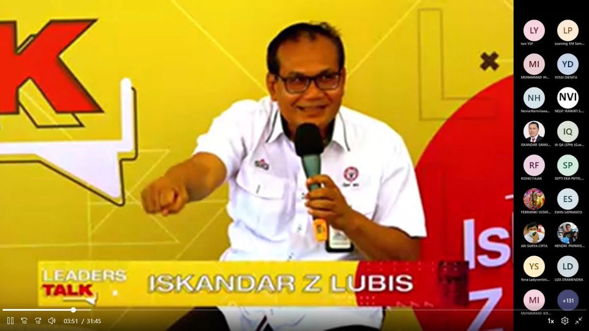 Iskandar pada program Leader’s Talk tersebut menyampaikan tiga hal yang menurutnya, harus dimiliki seorang leader selain kemampuan manajemen, yaitu organizing, actuating, dan controlling.