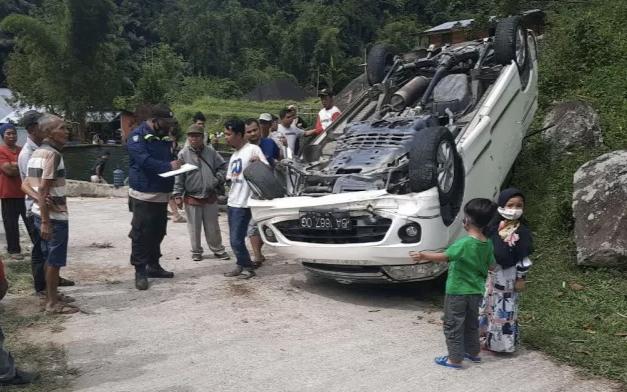 Minibus Terbalik di Matur Agam, Sopir dan Tujuh Penumpang Berdarah-darah