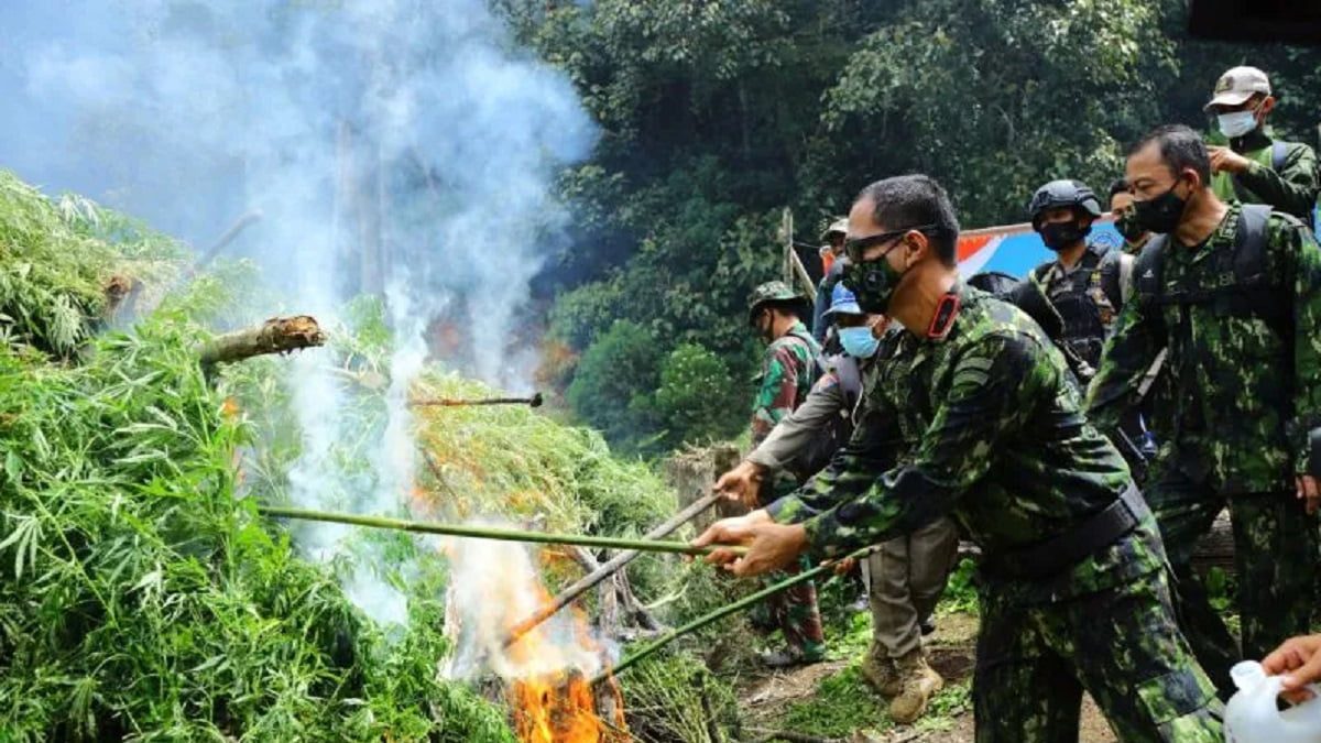 ACEH, RADARSUMBAR.COM – Badan Narkotika Nasional (BNN) memusnahkan ladang ganja siap panen seluas 5 hektare (Ha) di kawasan Hutan Lindung Pegunungan Leuser, Desa Agusen, Kecamatan Blangkejeren, Kabupaten Gayo Lues, Provinsi Aceh.