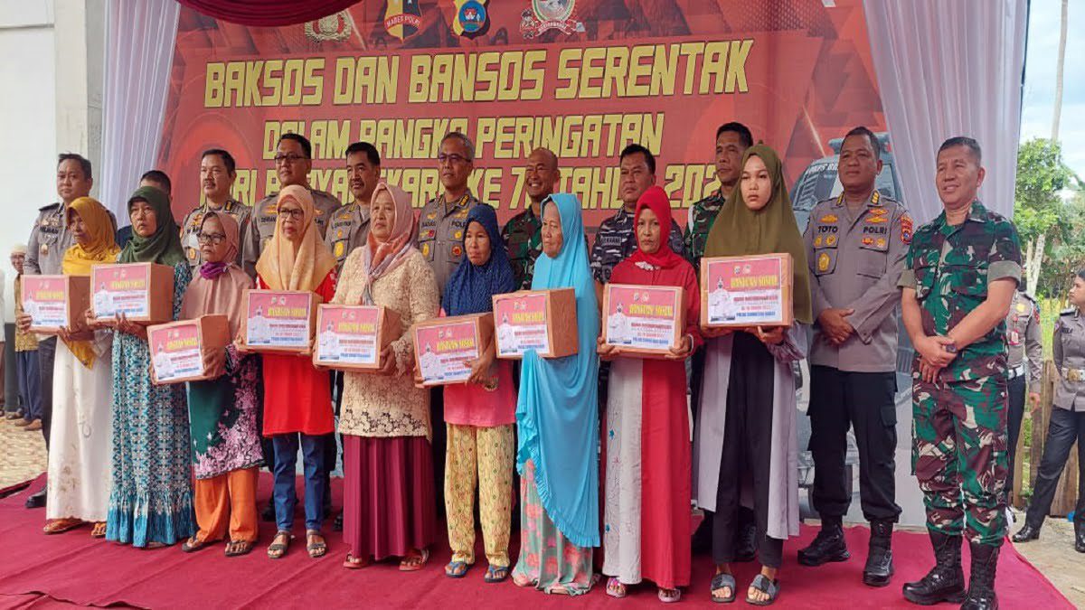 Kegiatan ini adalah kegiatan baksos dan bansos serentak yang dilakukan dalam rangka memperingati Hari Bhayangkara ke 76. Sebanyak 500 paket sembako diserahkan kepada masyarakat.