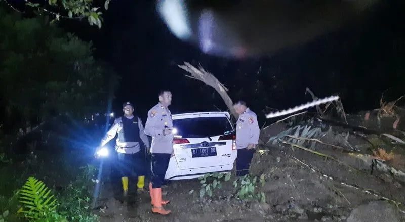 Ia mengatakan di titik lokasi longsor Polong Enam juga ditemukan satu unit kendaraan roda dua dengan plat Nomor Polisi BA 6857 SC yang terjebak dan tertimpa material longsor.
