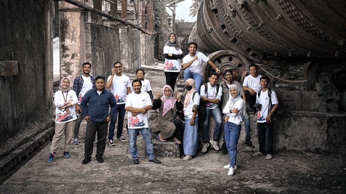 Jajaran Biro Humas Semen Padang dan jurnalis di Padang berpose di Pabrik Indarung 1 usai perayaan HUT Pengambilalihan Semen Padang yang ke-64.