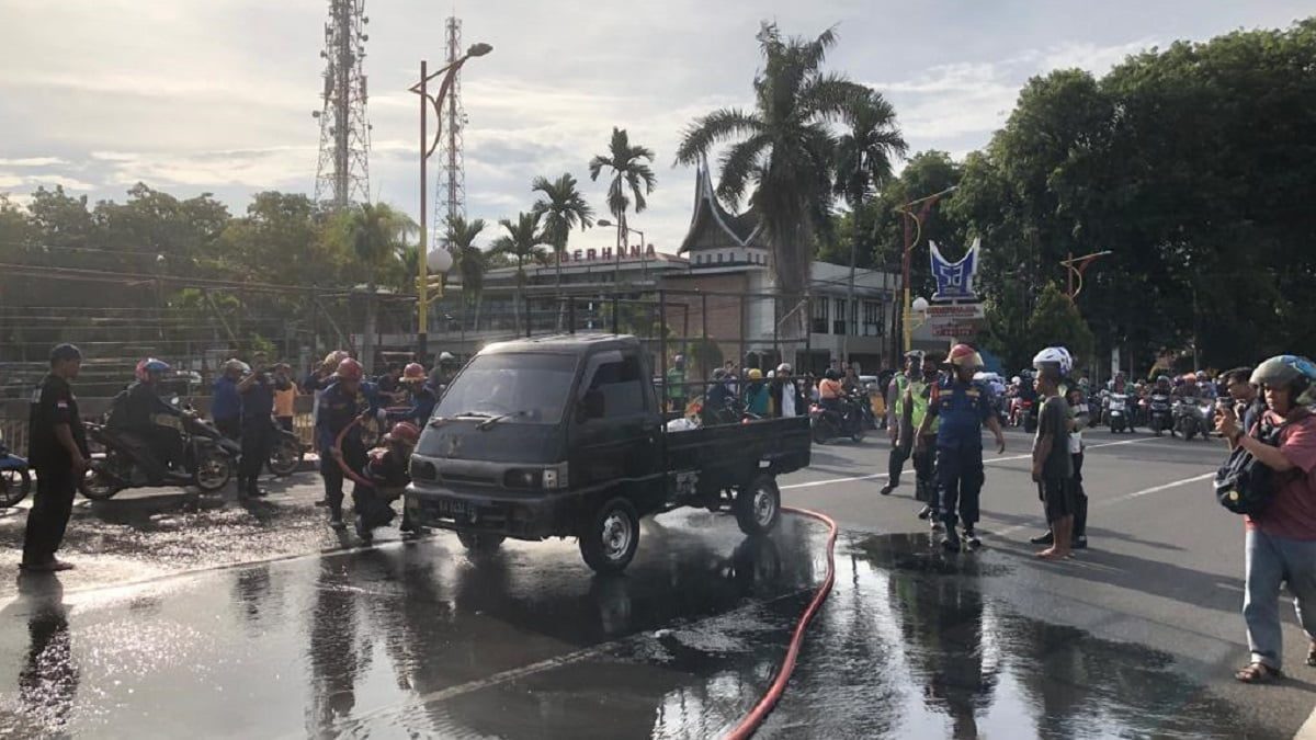 Mobil pikap terbakar di Jalan Protokol Kota Padang, tepatnya di depan RM Sederhana.