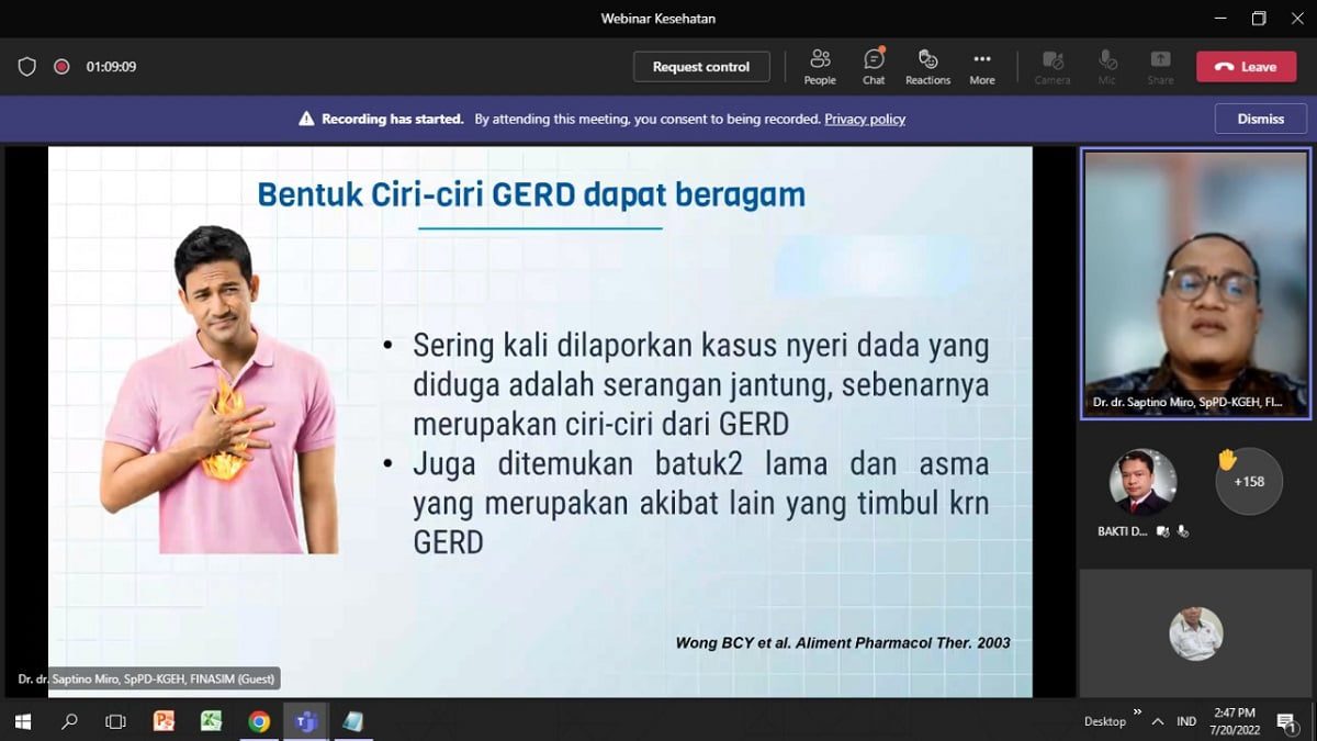 Webinar kesehatan yang digelar PT Semen Padang diikuti antusias oleh para peserta. Dan itu, dibuktikan dengan berbagai pertanyaan dari para peserta. Salah satu pertanyaan adalah soal asam lambung yang kambuh saat bulan Ramadan.