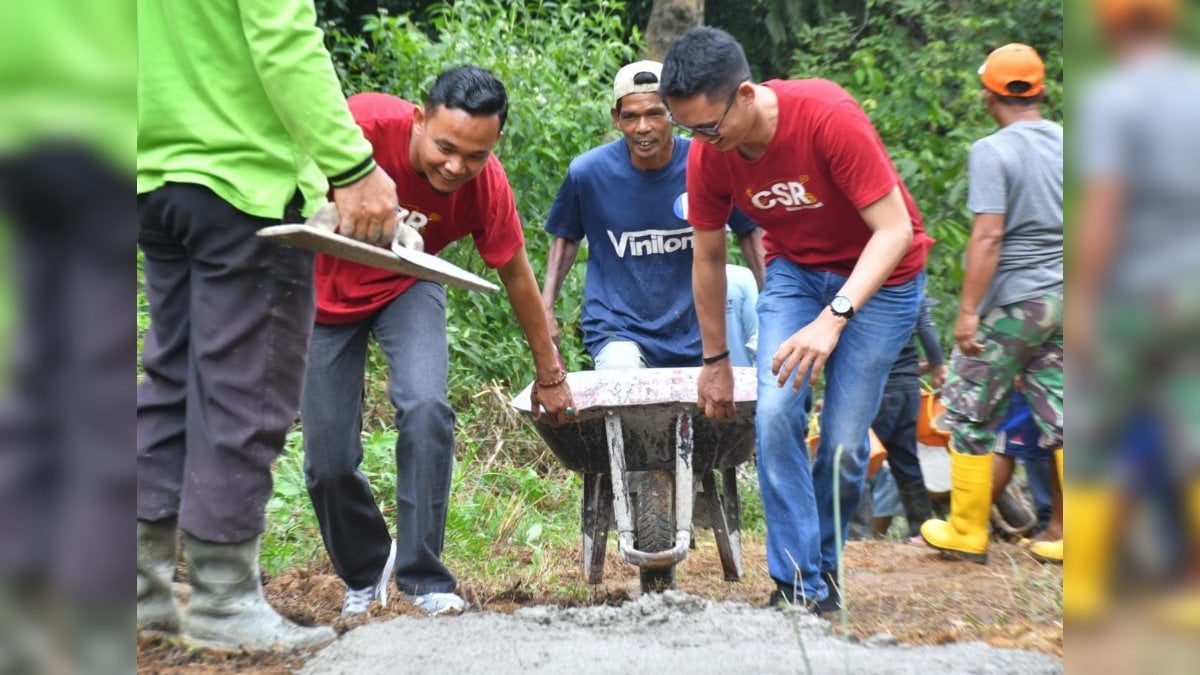 Pengecoran jalan secara swadaya yang digelar pada Minggu (24/7/2022) kemarin dihadiri Kepala Unit CSR Semen Padang Rinold Thamrin, dan Ka Sie Pendanaan Usaha Mikro Kecil (PUMK), Satrio Rian Bhakti, serta sejumlah staf CSR Semen Padang.