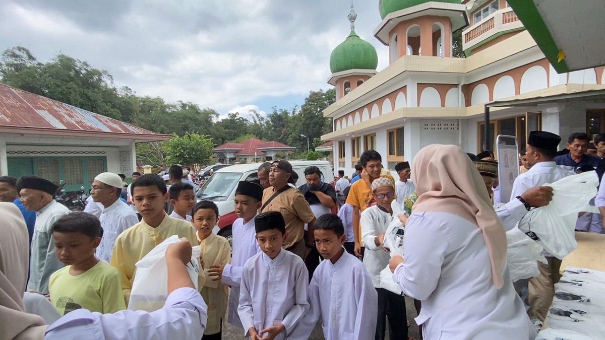Ratusan nasi kotak dibagikan kepada jamaah Masjid Taqwa, Jorong Kuruk Pakan Ahad, Nagari Kubang Putih, Kecamatan Banuhampu.