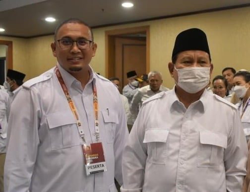 Ketua DPD Gerindra Sumbar Andre Rosiade bersama Ketua Umum Partai Gerindra Prabowo Subianto saat Rapimnas Paratai Gerindra 12 Agustus 2022.
