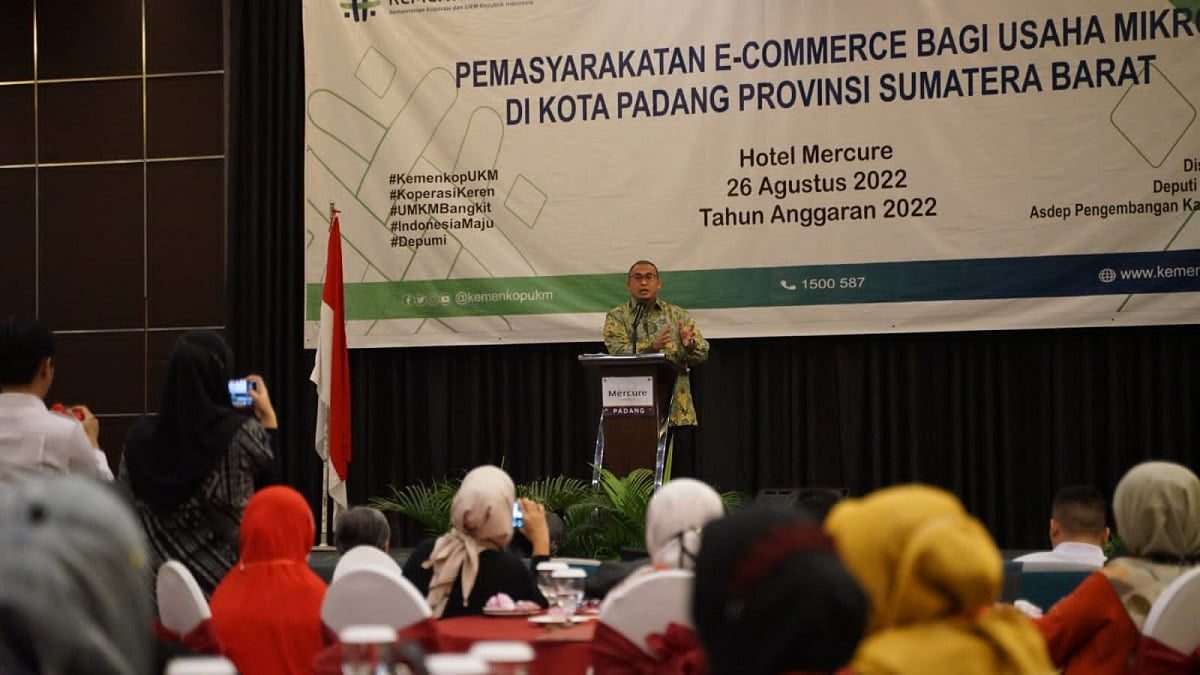 PADANG, RADARSUMBAR.COM – Kementerian Koperasi dan UKM (Kemenkop dan UMK) mengadakan pelatihan bertajuk “pemasyarakatan e-commerce bagi usaha mikro di Kota Padang” pada Jumat (26/8/2022) di Hotel Mercure Padang.