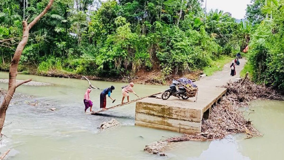 Sudah tiga kali jembatan tersebut dihantam banjir selama dua bulan terakhir. Namun, belum ada juga perhatian Pemerintah Daerah (Pemda) setempat yang serius untuk memperbaikinya.