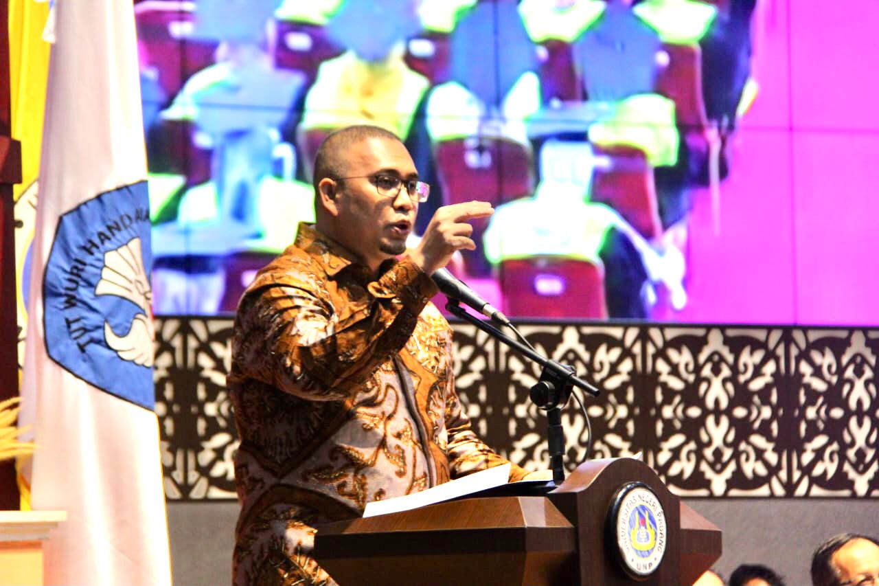 PADANG, RADARSUMBAR.COM – Anggota DPR RI yang juga anggota kehormatan Majelis Wali Amanat (MWA) Universitas Negeri Padang (UNP) Andre Rosiade menyampaikan orasi ilmiah pada wisuda ke-128 di Auditorium UNP, Air Tawar, Kota Padang, Rabu (21/9/2022). Andre memberikan ulasan soal pembangunan Sumbar yang dianggapnya hari ini belum sesuai harapan, dan tertinggal dari provinsi lain di Pulau Sumatra.