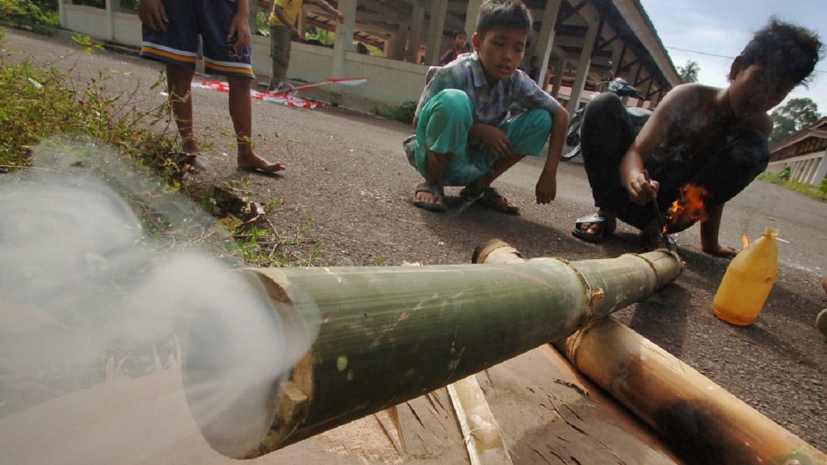 Cara “mengoperasikannya” dengan sebilah kayu kecil yang dinyalakan dan dekatkan ke lobang sumbu, maka lobang itu akan menangkap api dan mengeluarkan bunyi keras di ujung bambu.