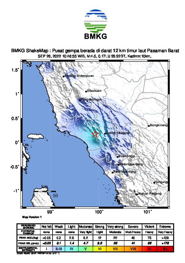 Gempa M 4,5 Hoyak Pasbar, BMKG: Akibat Sesar Aktif Segmen Talamau