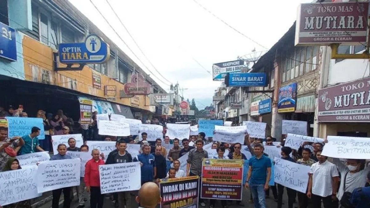 Aksi damai yang dilakukan di sepanjang Jalan penghubung Jam Gadang dan Kebun Binatang TMSBK itu diikuti seluruh pedagang yang membentangkan poster penolakan yang dilakukan selama satu jam hingga pukul 11.00 WIB, Jumat (30/9/2022).