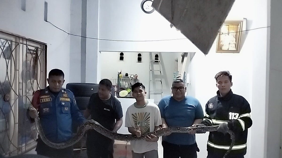 PADANG, RADARSUMBAR.COM – Dinas Pemadam Kebakaran (Damkar) Kota Padang kembali mengevakuasi seekor piton dari loteng rumah warga di Jalan Jerami Raya B2 Ampalu, Pengambiran, Kecamatan Lubukbegalung, Kota Padang, Selasa (11/10/2022) malam.