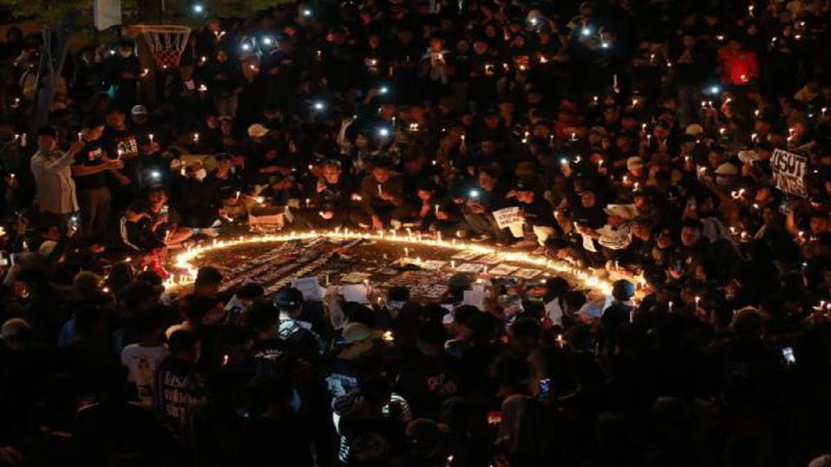 Untuk mendoakan para korban tragedi Kanjuruhan di Stadion Kanjuruhan malang, ratusan suporter sepak bola di Brebes bersama pemain Persab Brebes Liga 3 Jawa Tengah, gelar doa bersama dan menyalakan lilin serta tabur bunga. (Foto: Petra Akbar)