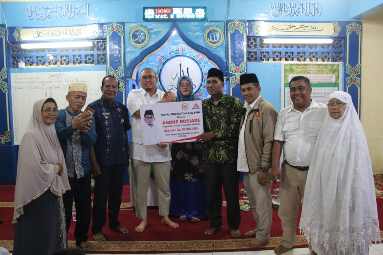 Anggota DPR RI asal Sumbar H Andre Rosiade berkunjung ke Mushalla Nur Islah, Kelurahan Sawahan Timur, Padang Timur dan memberikan bantuan. (Istimewa)