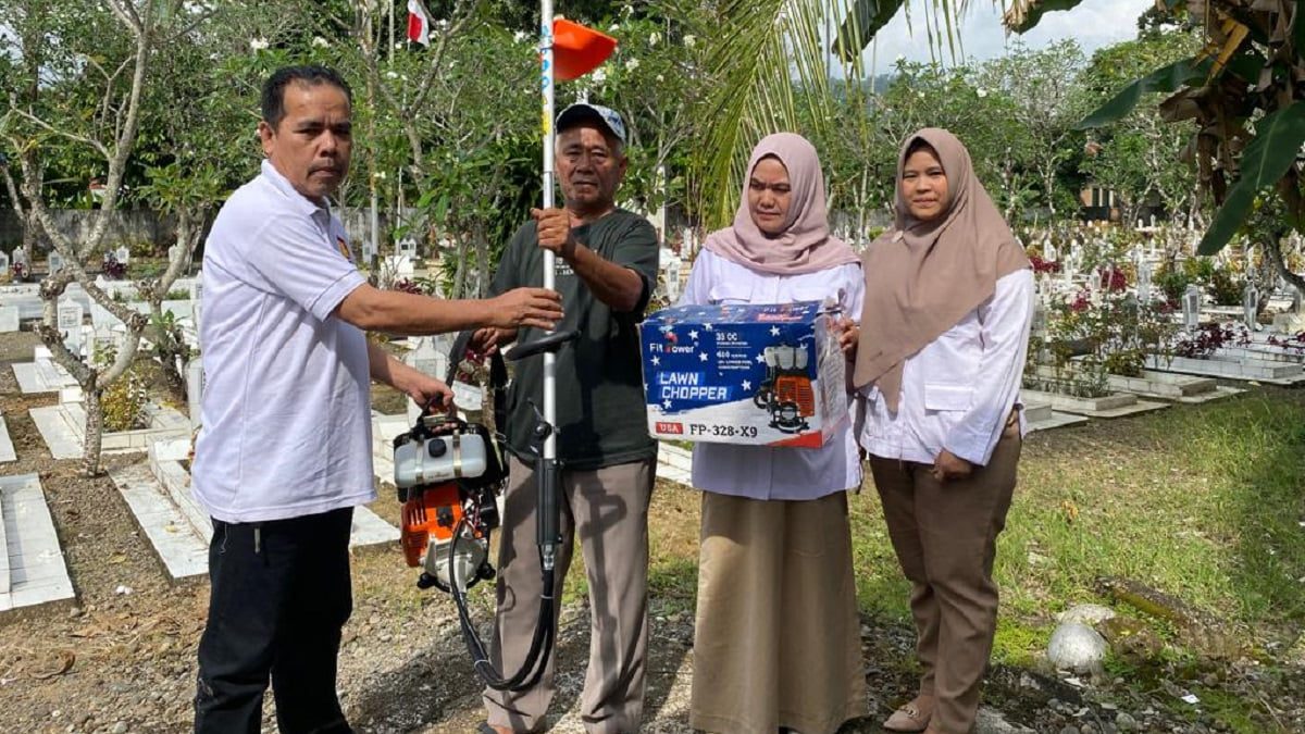“Alhamdulillah, hari ini datang tim pak Andre mengantarkan mesin potong rumput,” kata Oyon yang sudah dua generasi menjadi penjaga dan pembersih makam.