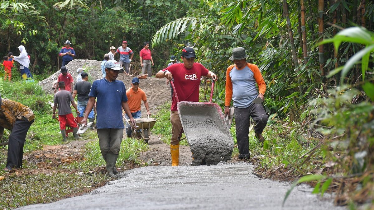 Dalam aksi Padang Bergoro ini, staf-staf di Unit CSR/TJSL, saling bahu membahu bersama warga untuk membuka akses jalan Gaduik Ketek sepanjang 1 Km.