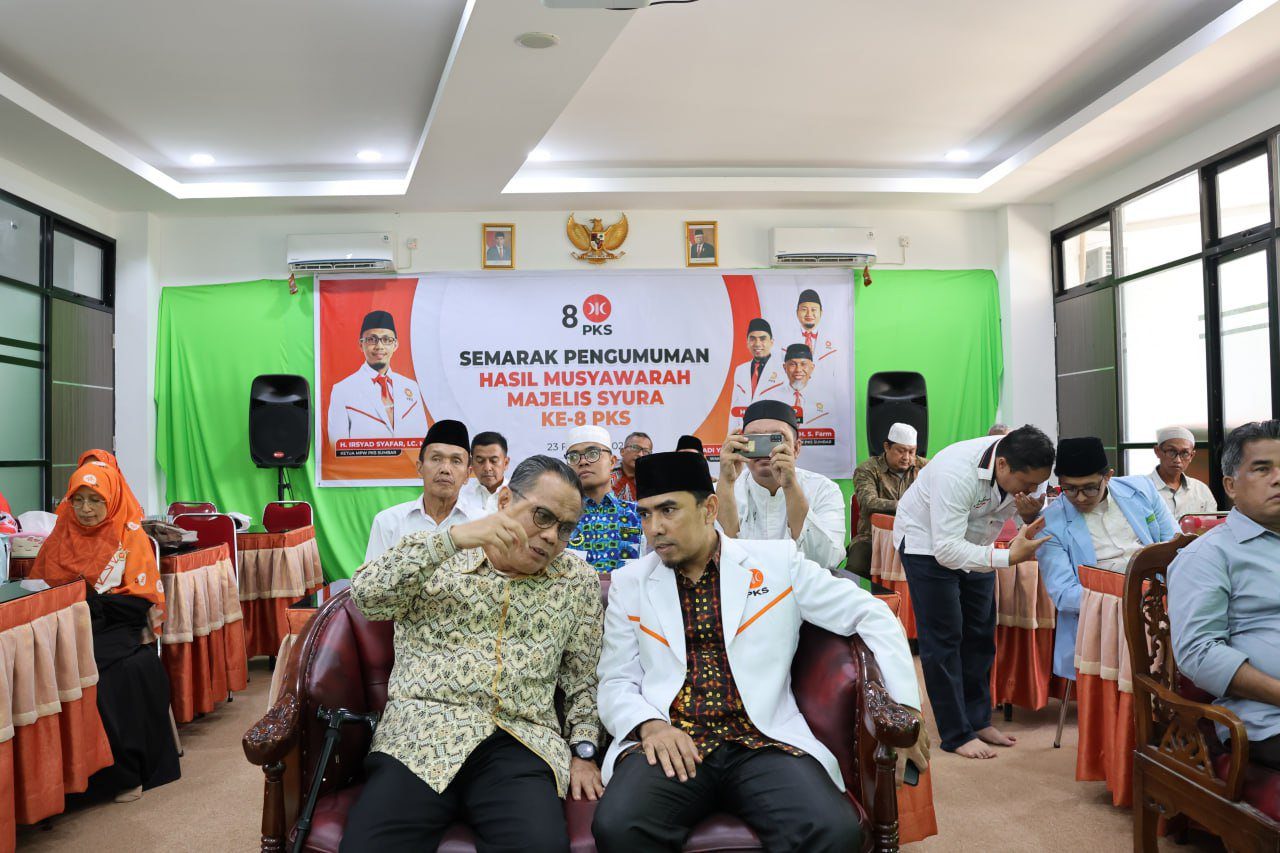 PADANG, RADARSUMBAR.COM-DPW Partai Keadilan Sejahtera (PKS) Sumatra Barat (Sumbar) menggelar ‘nonton bareng’ menyemarakkan Pengumuman Hasil Keputusan Rapat Majelis Syuro PKS, Kamis (23/2/2023). Kegiatan yang berlangsung di ruang pleno kantor DPTW PKS Sumatera Barat, Jalan Adinegoro, 47, Padang, itu dihadiri oleh pengurus DPW PKS Sumbar.