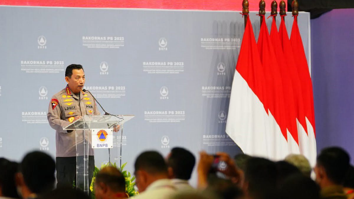 Hal tersebut disampaikan oleh Kapolri saat menjadi salah satu Pemateri pada Rakornas Badan Nasional Penanggulangan Bencana (BNPB), Jakarta, Kamis, 2 Maret 2023.