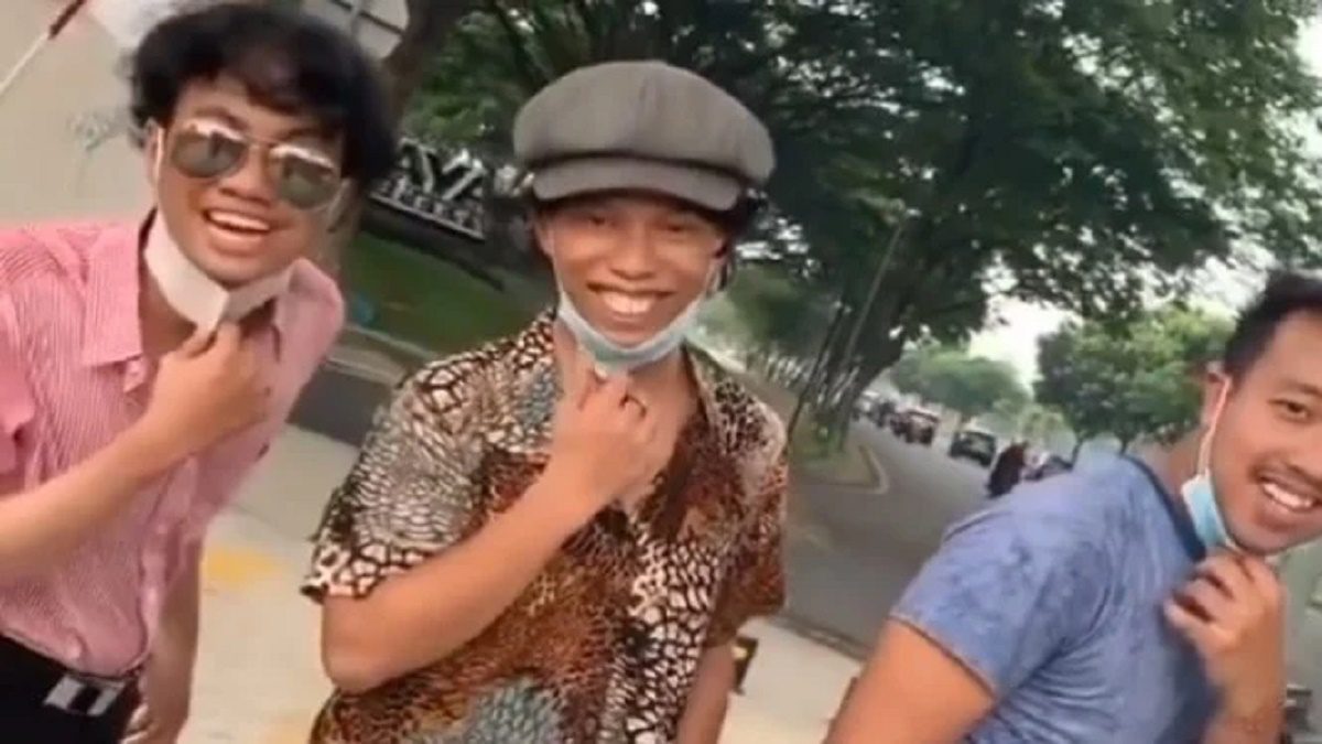 Dalam unggahan videonya itu menayangkan tiga cowok sedang berada di trotoar di depan perumahan. Tampak dari belakang tiga cowok ini tengah berjalan. Lalu pada langkah ke lima, tiga cowok ini membalikkan badannya. Tiga cowok ini satu persatu menurunkan masker ke dagunya sambil tersenyum.