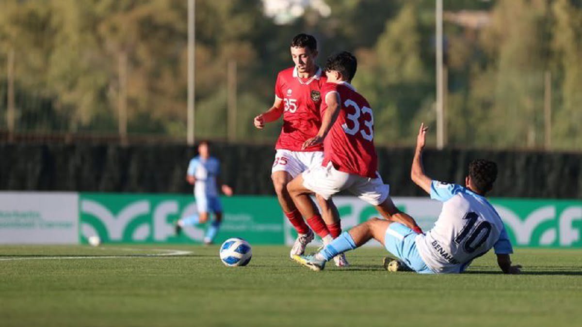 Ivar Jenner dalam perebutan bola saat pertandingan uji coba timnas U-20 Indonesia melawan Malaga U-19 di Marbella Football Center Malaga, Spanyol, Rabu (23/11/2022) lalu. (Dok. PSSI)
