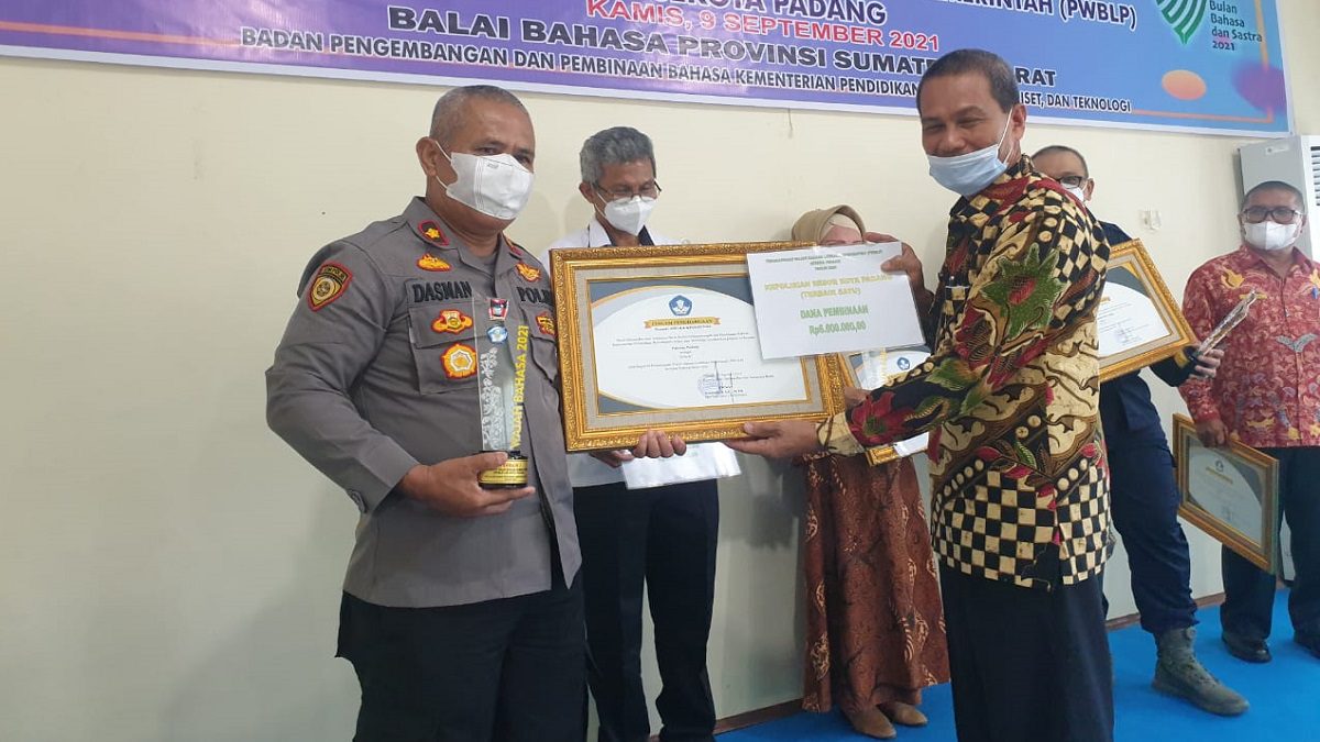 Penghargaan tersebut diberikan oleh Balai Bahasa Provinsi Sumatera Barat pada Sabtu (11/9/2021) di aula kantor tersebut.