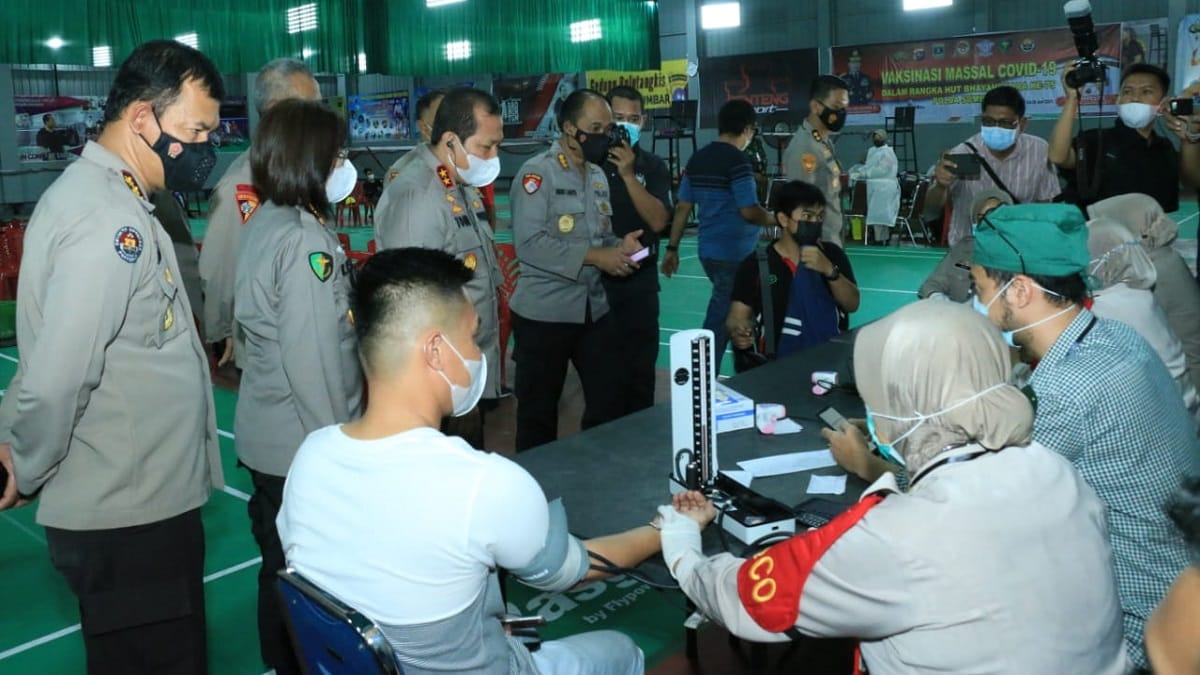 Vaksinasi Covid-19 oleh Polda Sumbar ini dilaksanakan di dua lokasi yakni, di GOR Badminton Polda Sumbar (samping Wisma Kemala) dan di lapangan Imam Bonjol Padang.