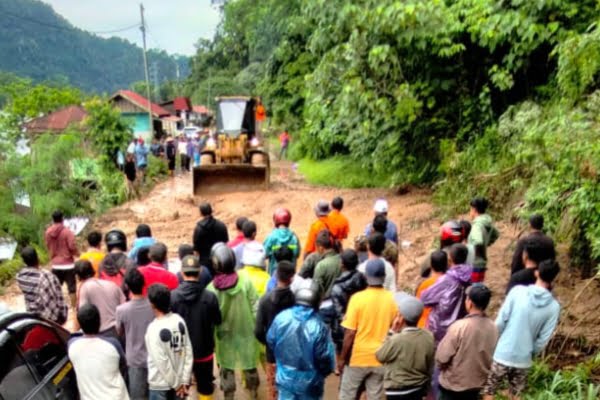 Pembersihan ruas jalan yang tertutup di kawasan Danau Maninjau. (Foto: Dok. Istimewa)