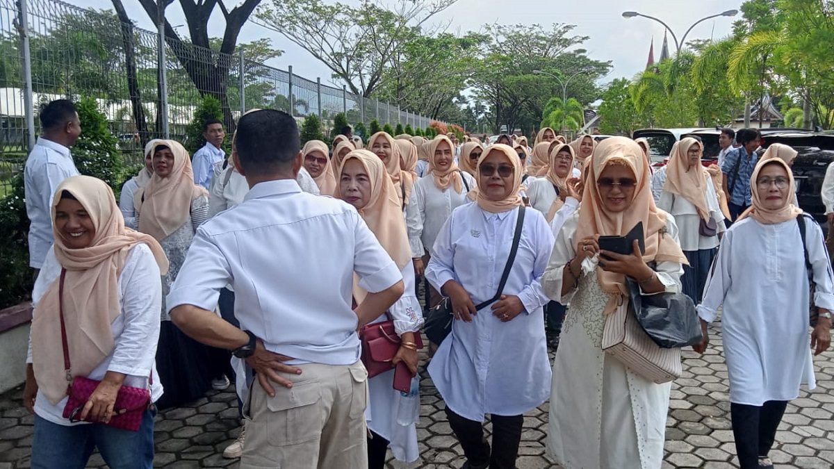 Pantauan Radarsumbar.com, selain emak-emak, terlihat sejumlah kader Partai Gerindra dan para petinggi partai berlambang kepala burung Garuda tersebut ikut hadir menanti kedatangan Prabowo Subianto.