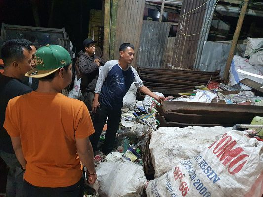 Polisi menggeledah tempat pengepul barang bekas yang diduga sebagai lokasi penyimpanan barang bukti besi rel kereta api hasil curian. (Foto: Dok. Polres Padang Panjang)