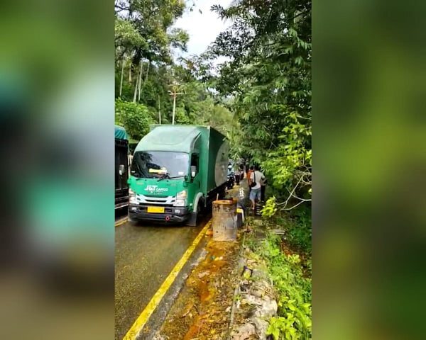 Pasalnya, jalanan menjadi licin usai satu truk pembawa minyak atau Crude Palm Oil (CPO) terbalik dengan posisi melintang dan menutup seluruh badan jalan.