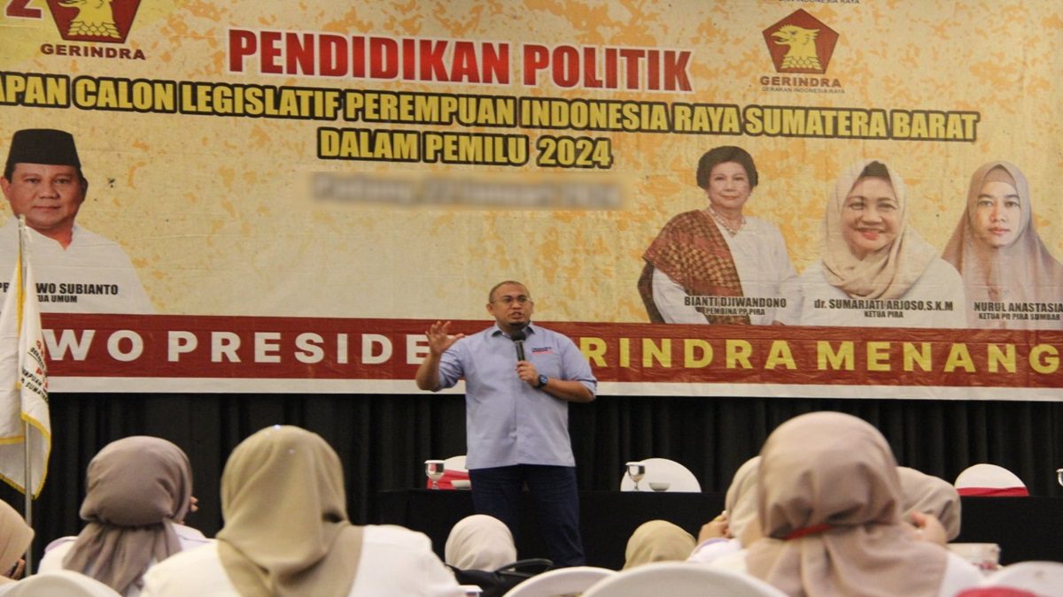 PADANG, RADARSUMBAR.COM – Anggota Dewan Perwakilan Rakyat Republik Indonesia (DPR RI) H Andre Rosiade meminta calon legislatif (caleg) organisasi sayap Partai Gerindra, Perempuan Indonesia Raya (PIRA) Sumbar tidak minder mensosialisasikan pasangan calon presiden dan wakil presiden Prabowo Subianto-Gibran Rakabuming Raka. Pasalnya, pasangan yang didukung Koalisi Indonesia Maju (KIM) ini diprediksi bakal menang satu putaran di Pemilu 2024 mendatang.