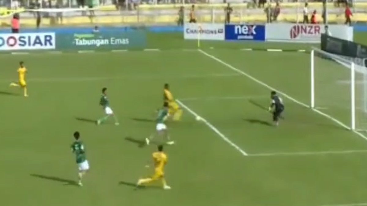 Proses gol Ngwoke di babak pertama ke gawang PSMS. (dok. tangkapan layar)