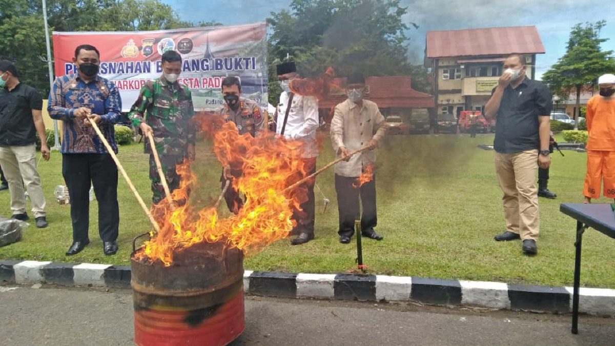 Pemusnahan barang haram tersebut dilakukan di halaman Mapolresta Padang Jumat (7/10) dipimpin langsung Kapolresta Padang Kombes Pol Imran Amir. Turut dihadiri Wali Kota Padang Hendri Septa dan Dandim 0312/Padang Kolonel Inf Mochammad Ghoffar Ngismangil.
