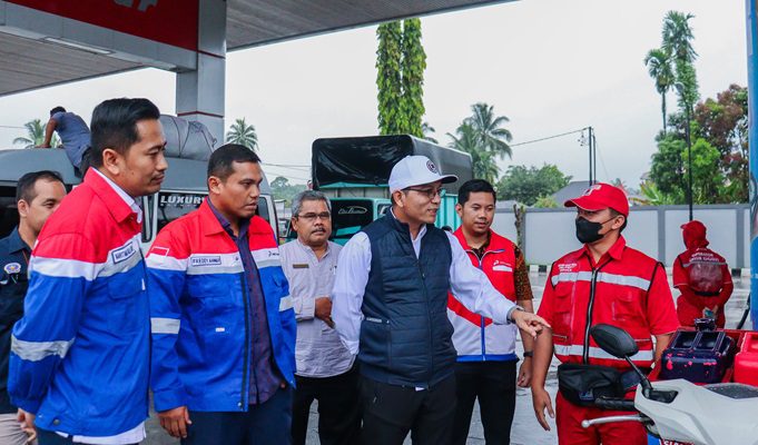 PADANG, RADARSUMBAR.COM – Dalam memastikan ketersediaan stok Bahan Bakar Minyak (BBM) aman jelang tahun baru 2024, Sekretaris Jenderal (Sekjen) Kementerian Energi dan Sumber Daya Mineral (ESDM), Dadan Kusdiana bersama Executive General Manager (EGM) Pertamina Patra Niaga Regional Sumatera Bagian Utara (Sumbagut), Freddy Anwar melakukan pemantauan penyediaan BBM di Integrated Terminal (IT) Teluk Kabung dan beberapa SPBU di jalur utama Padang-Bukittinggi, Sumatera Barat (Sumbar), Jumat (29/12/2023).