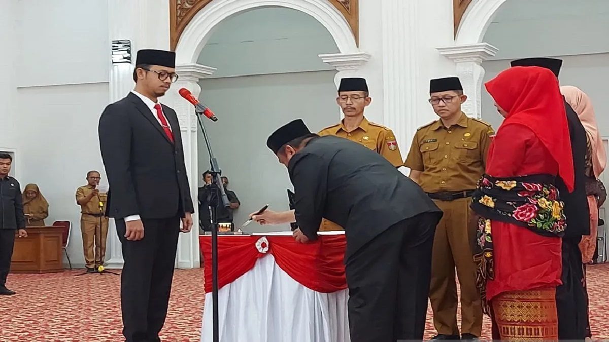 Wali Kota Bukittinggi, Erman Safar saat melantik pejabat baru Pemkot Bukittinggi. Sebanyak 81 orang pejabat dilantik di awal tahun 2023 (Antara/Al Fatah)