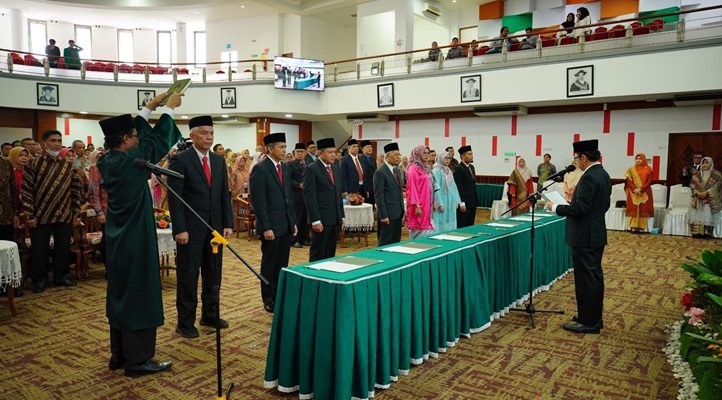 Pelantikan empat Wakil Rektor dan pejabat utama lainnya di Unand, Rabu (3/1/2024) siang. (Foto: Dok. PPID Unand)