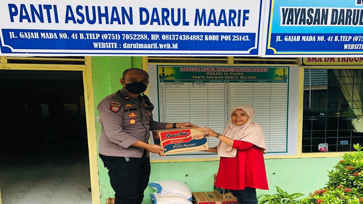 PADANG, RADARSUMBAR.COM – Polsek Kawasan Bandara Internasional Minangkabau (BIM) menyalurkan bantuan sosial (bansos) kepada masyarakat terdampak COVID-19 di sekitar wilayah Polsek Kawasan BIM, salah satunya ke panti asuhan. Bantuan itu diserahkan langsung Kapolsek Kawasan BIM Ipda Akbar Kharisma Tanjung.