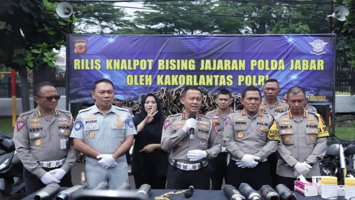 Direktur Utama Jasa Raharja saat merilis knalpot bising di Bandung. (Antara/HO-Humas Jasa Raharja)