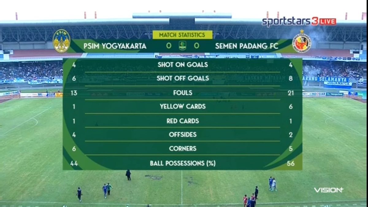 PSIM Jogja mendapat kesempatan melalui tendangan bebas tipis di luar kotak penalti dari Dias Angga. Sayang, tendangannya membentur barisan pertahanan Semen Padang.