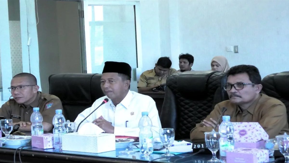 Wakil Bupati Pasaman Barat Risnawanto saat mengadakan rapat koordinasi (rakor) Tim Koordinasi Penanggulangan Kemiskinan Daerah (TKPKD) Pasaman Barat di Simpang Empat, Selasa (30/1/2024). ANTARA/Altas Maulana.