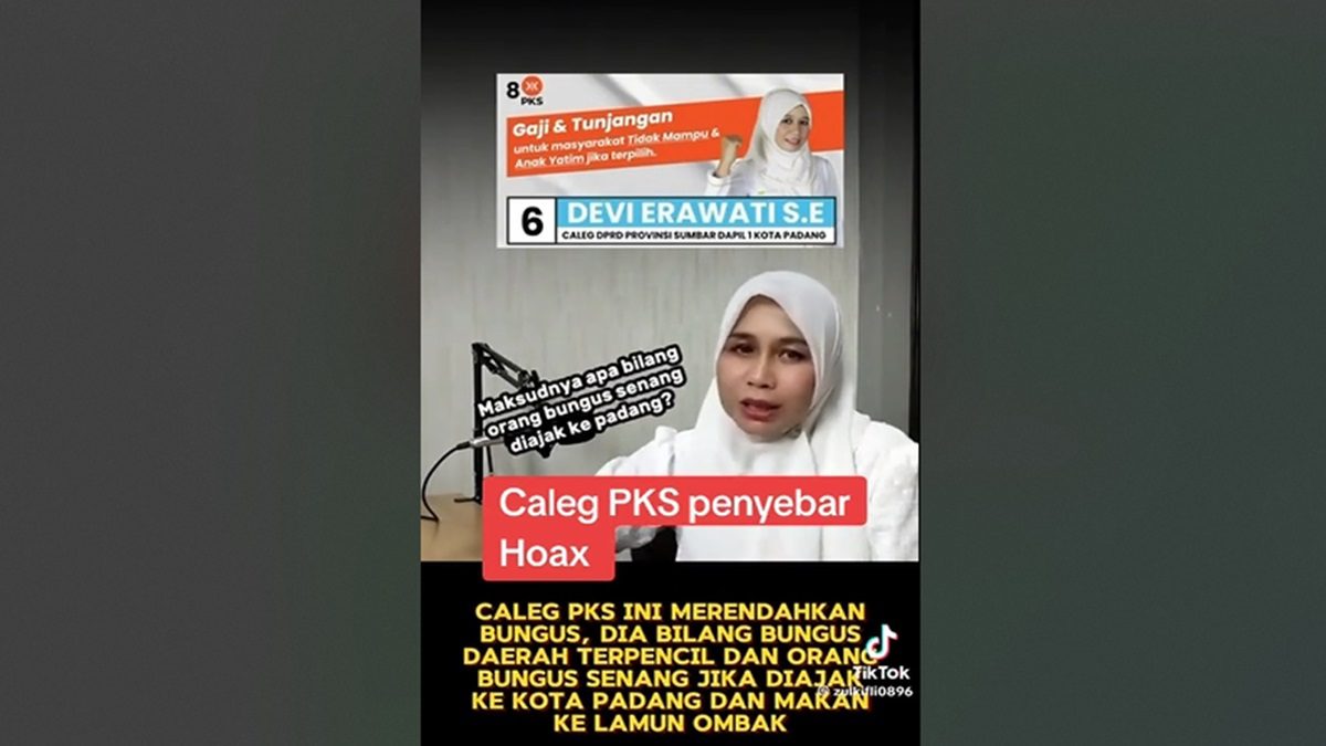 PADANG, RADARSUMBAR.COM – Nama caleg PKS DPRD Sumbar Devi Erawati sejak Rabu (7/2/2024) malam hingga Kamis (8/2/2024) viral di media sosial, terutama TikTok. Legislator itu dihujat lantaran ucapannya yang sebut Bungus adalah daerah terpencil.
